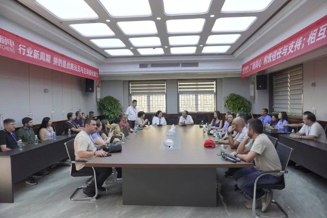 10月18日,哥伦比亚外商团队一行抵达樱雪总部,展开深度参不雅调查。26人的外商团队先后参不雅了樱雪的智能化出产车间、科研手艺尝试室以及将来厨房科技馆。正在出产车间,全从动化的出产线和细密的智能喷涂系统让外商们赞赏不已,他们细致领会了樱雪正在智能制制方面的投入和。